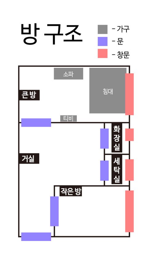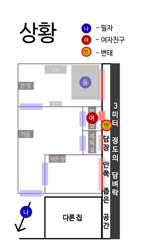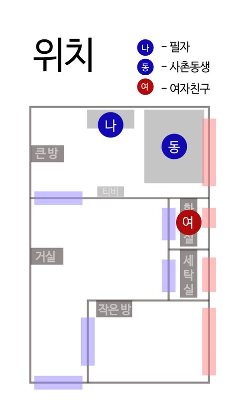 이 날 제 사촌동생이 놀러와서 집에는 저까지 세 명이 있었는데 사건이 일어날 상황에 아래는 저희 위치 입니다.