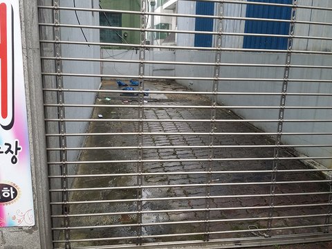 우회해서 도착한 곳에는 때마침 셔터(바리케이트?)문이 있었고 저는 그 안으로 들어가 셔터를 내렸습니다