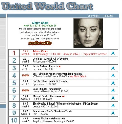 추천눌러) 엑소 월드차트 4위진입