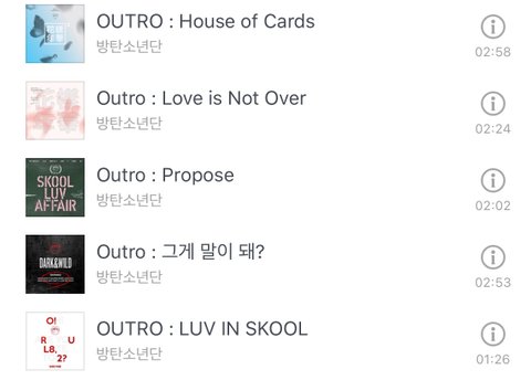 방탄이들 아웃트로 중 가장 좋아하는 곡을 '하나만' 고르시오.