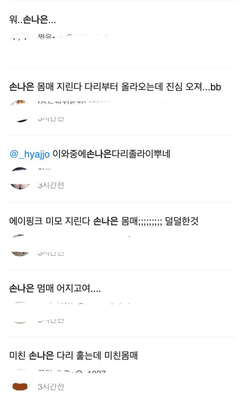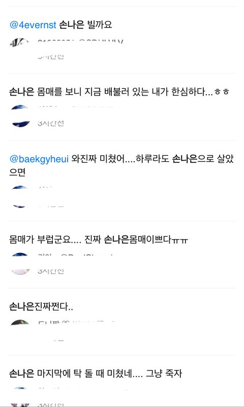 오늘자 뮤직뱅크 손나은 반응 트윗글들