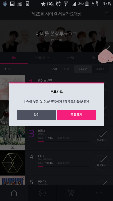 지민이망개떡 아니면 방탄코드 둘중에 하나로 10장만ㅠㅠㅠ 계정팠는데 투표권없다..