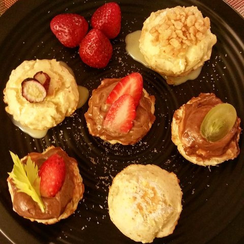 오밤중에 구운 도넛츠.. 너무 맛없어서....데코라도 이쁘게 하자는 심정으로 계획에 없던 초코크림까지..