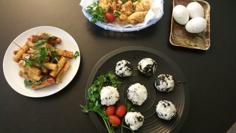 기름떡볶이와 주먹밥, 그리고 치킨!! 치킨 튀기는거 알고보니 정말 간단하네요 ㅎㅎ 여긴 한국처럼 배달이 잘 되지 않아 종종 이렇게 먹는답니다