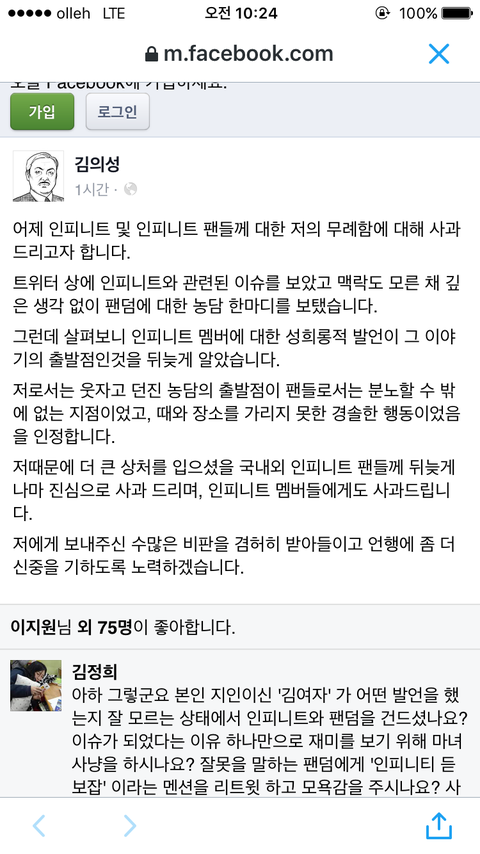 사과글 올렸는데 이걸 받아드리지않으면 극성 빠순이 취급당하며 사과했는데 받아주지않았다며 여전히 빠순이는