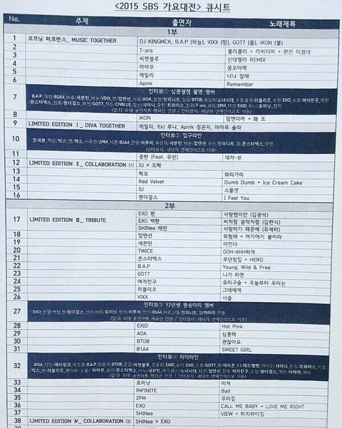 가요대전 큐시트