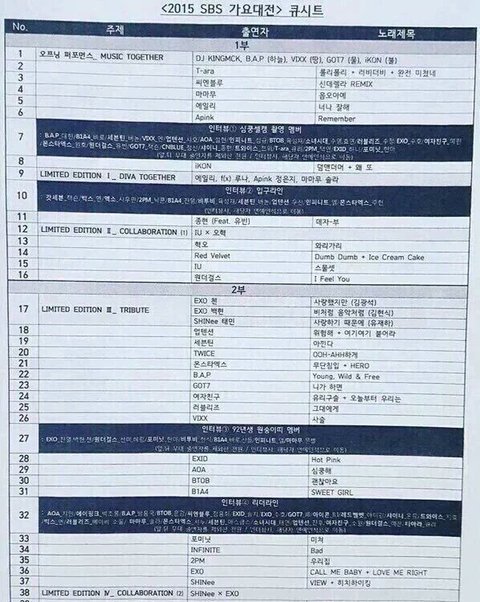 스브스 가요대전 큐시트