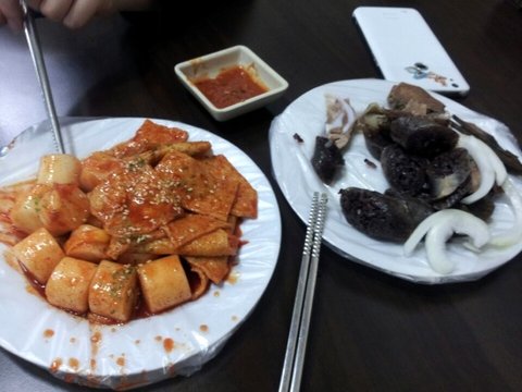 저녁으로 떡볶이, 어묵, 순대 먹었어요 여자 둘이지만 대식가라 이정도는 거뜬