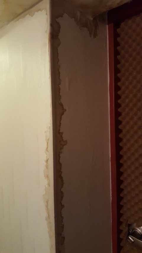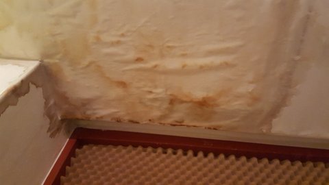 벽지가 비에 젖어 녹아 곰팡이가 저렇게 심하게 생긴거 보이시나요..