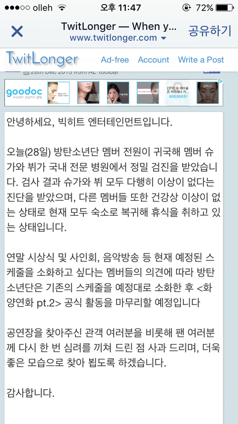 빅히트 피드백 올라옴...