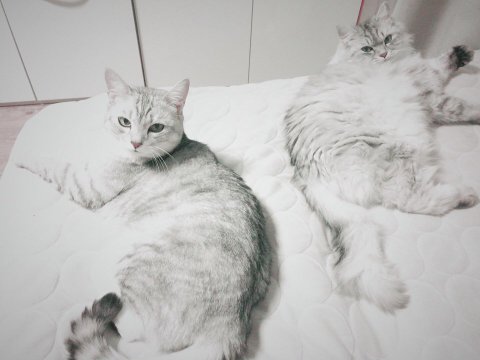 나란히 퍼질러 자다가도 쭈야! 꾸미야! 부르면 카메라를 쳐다봐줘요.