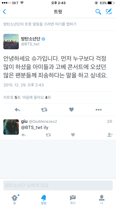 일본 아미들 개화났던데 빅히트 대처도 제대로 안하고 윤기가 사과하네
