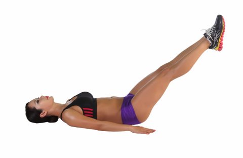 바닥에 누워 다리를 펴고, 양발은 옆에 붙인다. 숨을 내쉬면서 천천히 다리를 수직으로 들어 올린다. 다시 숨을 들이쉬면서 바닥에 거의 닿을 때까지 다리를 내린다.