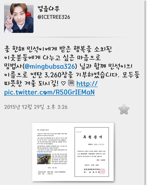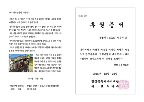 시우민이름으로 연탄 기부