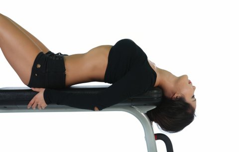 4-탁자에 누워 가장자리 밖으로 머리를 내민다. 숨을 내쉬며 천천히 머리를 뒤로 젖혀 멈춘다.