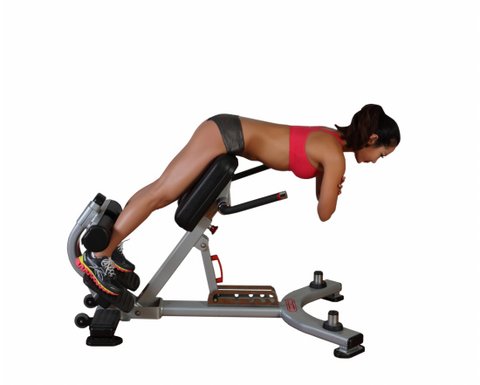 발판 위에 서서 골반과 발뒤꿈치를 지지대에 댄다. 양손을 가슴 앞에 교체시켜 모으고 숨을 들이쉬면서 엉덩이가 60도의 각을 이룰 때 까지 천천히 상체를 앞으로 기울인다. 다시 숨을 내쉬면서 천천히 상체를 원위치로 되돌린다.