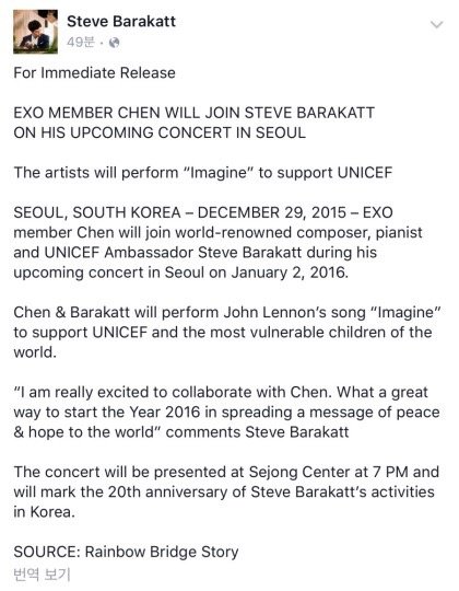 존 레넌의 이매진이란 노래를 엑소의 첸과 함께 한다고 올라왔네요 ㅎㅎ