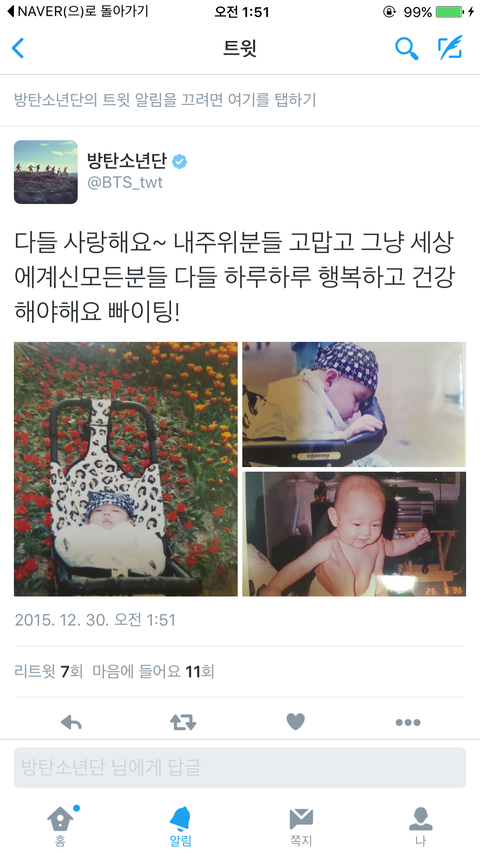 항상 힘들 때마다 짹 올려주는 김태형 진짜.... 사랑스럽다