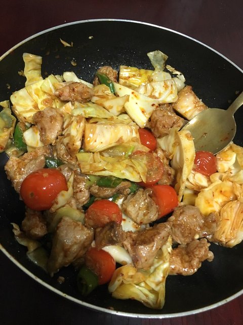 중국식 돼지고기 볶음이요 토마토랑 매운 두반장이랑 조화가 나름 괜찮아요
