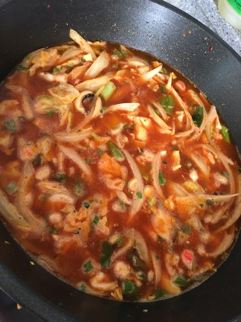 두반장이랑 굴소스와 청양고추로 화끈하게 해산물볶음.