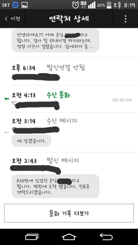 이제야 나타나시네요. 일단 손해사정인이 제출하라는 자료 다 제출했습니다. 그리고 형사고소도 했습니다. 이전 글 보시면 아실텐데요. 손해사정인한테도 얘기했었습니다. 또 연락을 제가 피했다고 하는데... 전화 안받은 기록 같은 거는 가지고 계시는지요. 점장님이 전화 안받은 부재중 기록 내역 있습니다. 이것도 올리도록 하겠습니다.