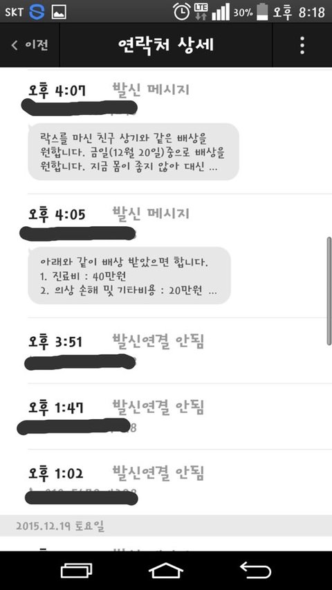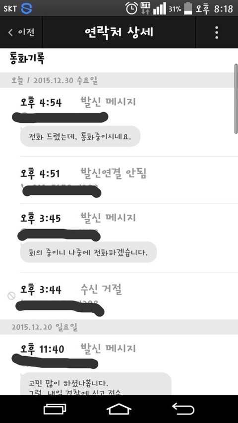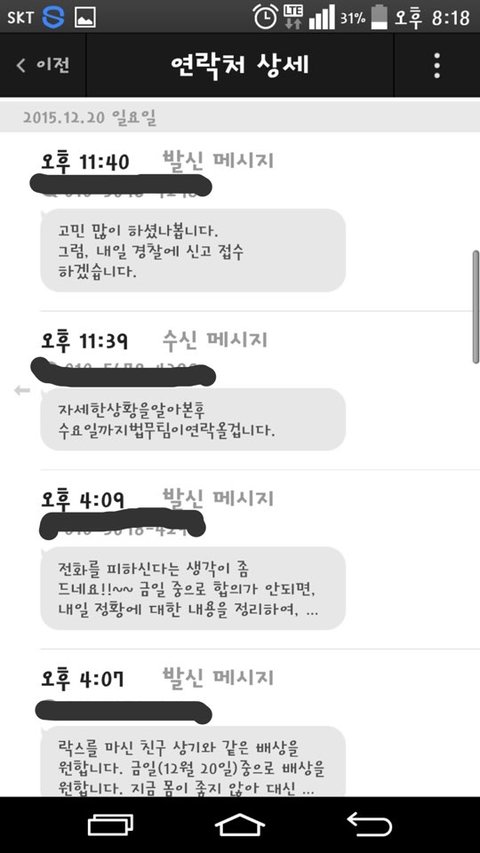 그쪽에서 제가 연락을 피하고 있다고 해서, 통화랑 문자내용 그대로 캡쳐해서 올립니다.