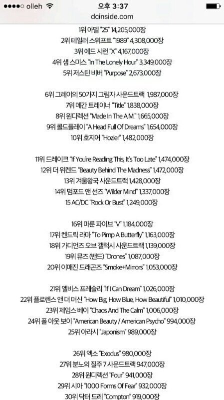 정상공지)2015 전세계 가장 많이 팔린-앨범 엑소 순위는?