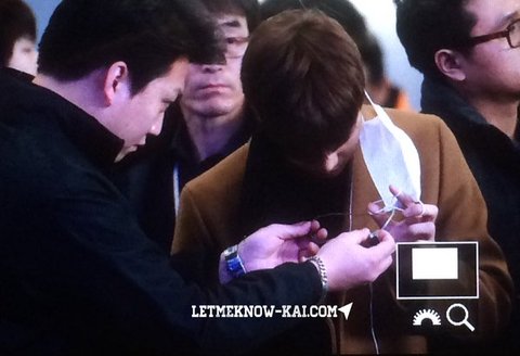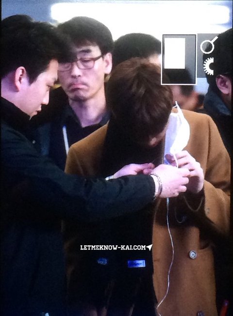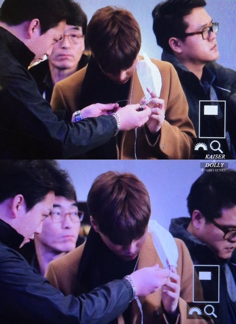 종인이 마스크에 이어폰꼬여서 씨큐형이 도와줬어ㅋㅋㅋ