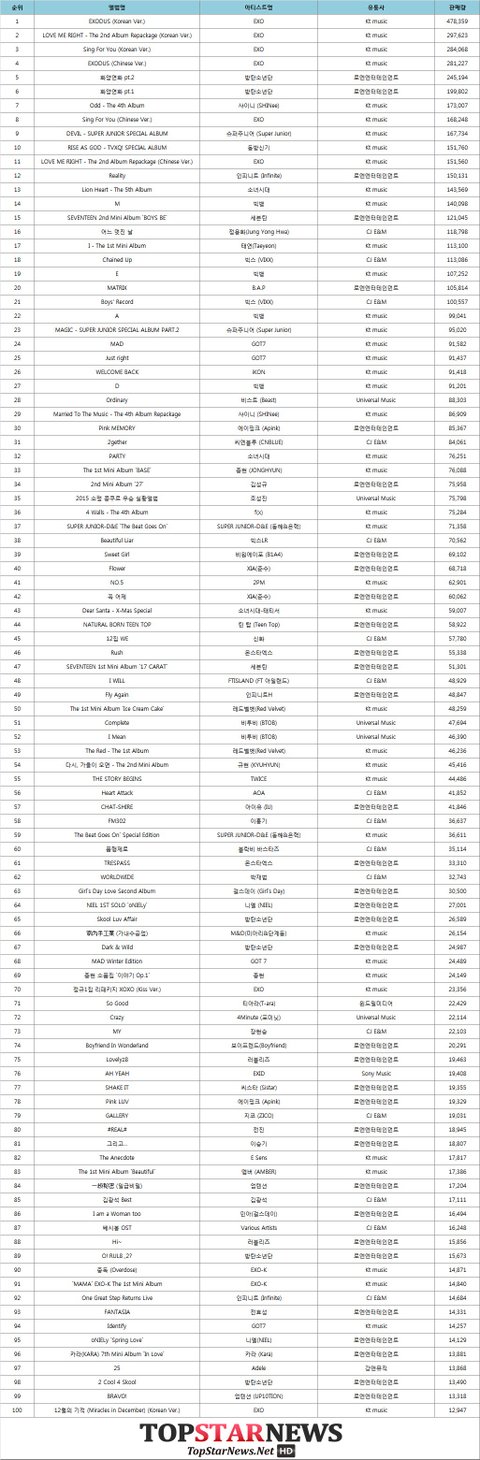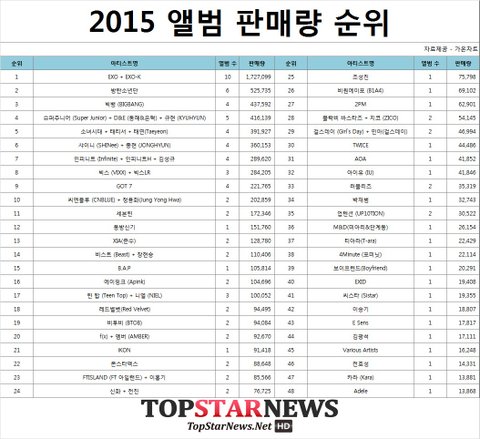 앨범판매량! 선배들사이에쏙껴있다ㅠㅠㅠㅠ