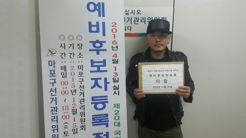 저는 정치인이 아닙니다. 그리고 정치인이 될 수 있는 능력도, 되고 싶은 마음도 없습니다. 하지만 정치에 관심을 가지고 적극적인 참여를 해야 한다는 것을 잘 알고 있습니다. 참여의 방법은 투표입니다. 오늘 저는 제20대 국회의원 선거에 예비후보자로 등록함을 여러분께 알립니다. 지난 십여 년간 저는 타투이스트라는 직업을 가지고 살아왔습니다. 대한민국에서는 타투이스트라는 직업은 법적으로 인정을 받지 못하기에 어쩌면 사회가 정해놓은 범법자의 삶을 살았는지도 모릅니다. 그런데 이 현실이 너무 억울하고 인정할 수 없어서 타투 합법화 운동을 시작했습니다. 그 시작은 2007년 6월 대학로에서의 공개시술 퍼포먼스로서 나의 주장을 알렸습니다. 그 뒤로 청와대로 국회로 그리고 대통령직 인수위원회와 법원을 찾아다니며 1인 시위를 했습니다. 세상이 알아주지 않는 작은 외침이었지만 진정성을 지키고자 노력했던 시간이었습니다.그런데 어느 날 이런 생각이 들었습니다. 나는 왜 국가와 사회에 바라고만 있는가? 혹시나 훗날 그들이 너는 국가와 사회를 위해 무엇을 했는가? 너무나 이기적인 저의 모습을 보게되었고 제 자신을 돌아보니 아무것도 없었습니다. 나는 무엇을 할 수 있을까? 많은 생각과 고민을 했습니다. 작은 행동이라도 보이고 싶었습니다. 2010년 삼일절 일본 대마도로 향했습니다. 독도, 위안부, 신사참배에 관한 내용을 가지고 대마도 시청 앞에서 기습시위를 하였습니다. 그리고 제 오른쪽 허벅지에 독도를 새겨 넣었습니다. 일본 활동의 시작이었습니다. 그렇게 지난 5년간 저는 매년 일본 야스쿠니, 국회, 외무성을 찾아 독도 영유권 침탈행위, 일본군 강제 위안부, 야스쿠니 신사참배에 대하여 작은 소리를 내었습니다. 2014년 4월 16일 저는 무전도보여행 중이었습니다. 철원을 지나 춘천으로 향하던 중 우연히 뉴스를 보았습니다. 잠시 여정을 멈추고 진도 팽목항으로 발길을 옮겼습니다. 일주일이라는 짧은 시간이었지만 내게 주어진 작은 일을 했습니다.세상에 아무런 관심을 가지지 않은 채 살아온 시간이 많았습니다. 특히 정치엔 더욱더 그랬습니다. 정치인을 혐오하고 비웃는 일이 전부였습니다. 투표의 소중한 권리와 의무도 지키지 않았습니다. 너무나 부끄럽고 창피한 지난 저의 모습이었습니다. 그러했던 제가 타투 합법화 운동을 시작하며 작은 일들을 하나하나 만들어가고 일본 내 활동을 해오면서 조금씩 세상의 보이지 않은 많은 불합리한 일들에 관심을 가지고 바라보게 되었습니다. 9급 공무원이 꿈과 목표가 되어버린 어린 청춘들, 전쟁터 같은 직장생활을 버티어 내고 있는 30, 40대 직장인들, 대기업의 횡포에 밀려 하루하루를 생계의 위협을 받고 있는 소규모 자영업자들이 세상에 넘쳐납니다. 세월호 희생자 가족들은 여전히 고통을 받고 있으며 역사 국정교과서 채택으로 올바른 역사는 지워지게 되었으며, 정부는 위안부 피해 할머님들이 지켜 오신 의지와 정신을 고작 100억이라는 돈 몇 푼에 팔아 넘겼습니다. 그럼에도 불구하고 박근혜 정부는 국민과의 소통을 단절하고 국민위에 군림하고 있습니다. 국민의 심부름꾼을 자처하는 여당과 야당의 국회의원들은 자기들의 권력유지와 기득권 지키기에만 몰두하고 있습니다. 왜 그럴까요? 그것은 바로 정치의 부재 입니다. 대한민국에 정치는 있어도 올바른 정치인이 없기 때문입니다. 정치인의 첫 번째 덕목이자 의무는 국민을 섬기는 일입니다. 우리는 이명박 정부의 비열함과 횡포를 경험했습니다. 그리고 원망했습니다. 그렇게 5년이라는 어둠의 시간을 보냈지만 우리는 또다시 역사상 가장 무능한 정부를 가지게 되었습니다. 정치인은 20, 30대 계층의 국민들을 두려워하지 않습니다. 그것은 투표를 하지 않기 때문입니다. 우리는 무조건 1번을 찍고, 새누리당을 찍는다고 노인세대를 비방하고 폄하하고 몰아세우지만 결국 그들은 불편한 몸을 이끌고 투표장으로 향했습니다. 정작 세상을 바꾸고 이끌고 나가야 할 청춘들은 노인세대들이 투표장에서 1번을 찍고, 새누리당을 찍고 있을 때 과연 무엇을 하고 있었을 까요? 비정상적인 세상을 SNS의 글 하나, 댓글 하나가 바꿔주지 못합니다. 술자리의 넋두리가 바꿔주지 못합니다. 이런 말이 있습니다. “선거란 좋은 정치인을 뽑기 위해서가 아니라. 나쁜 정치인을 뽑지 않기 위해 투표를 하는 것이다”수많은 정치인들은 지역에서 자신의 표를 얻고자 지역선거운동을 펼칠 것입니다. 지역에 기반을 두고 정당의 힘을 가진 그들이 선거에 당선이 되고 지역의 발전을 이끄는 것이 어쩌면 너무나도 당연할 것입니다.지난 2년이라는 시간 동안 배낭 하나 둘러메고 우리나라를 걸었습니다. 많은 생각과 고민을 했습니다. 어떻게 살아갈 것인가? 나는 무엇을 할 수 있을까? 끊임없는 물음의 연속이었습니다.저는 정당의 힘도, 자금력도, 지지층 기반도 없습니다. 하지만 좀 더 나은 세상을 위해 지금의 제 행동이 조금은 보탬이 될 수 있다면 기꺼이 행동에 옮기려 합니다. 또한, 한 표를 얻고자 지역 선거운동을 하지 않을 것입니다. 표를 얻고자 함이 아닌, 전국의 모든 청춘들