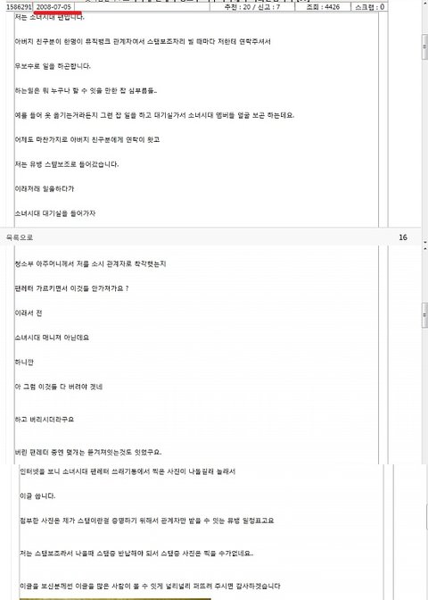 사건터지고 2008.7.5 뮤직뱅크 스텝보조가 올린글(인증도있음)