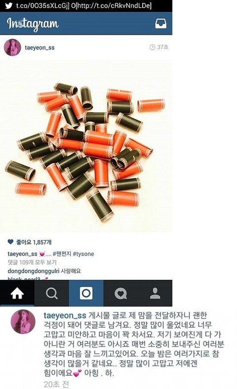 2013년 골디 인기상 투표 2위해서 팬들이 미안해하고 아쉬워하니까 태연이 남긴 글