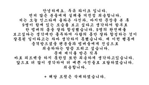 사과문 올라옴~~