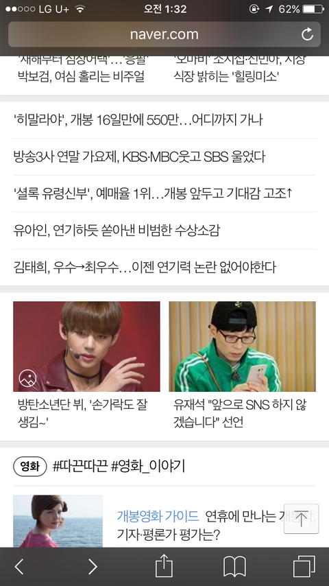 우리 태형이가 네이버메인에 떴네~
