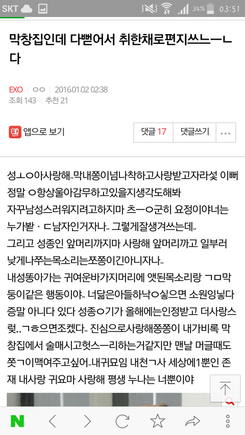 술취하시고 글올리셨는데 너무웃겨서ㅋㅋㅋㅋㅋㅋㅋㅋㅋㅋㅋㅋㅋㅋㅋㅋ 귀여우심 암튼 마무리는 화이팅!