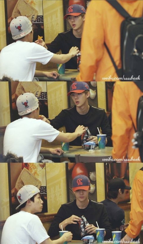 백현이 과자 먹여주는 세훈이