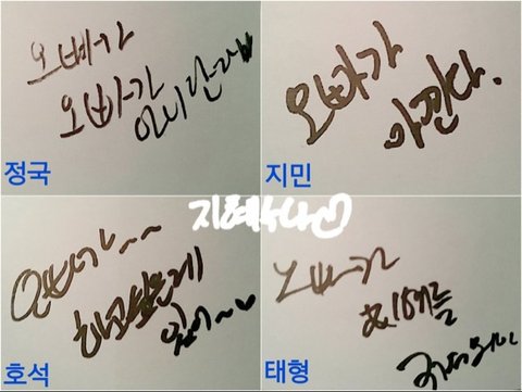 해달라고 그랬는데 이렇게 써줬대ㅋㅋㅋㅋ정국이 오빠가 아니래 개웃ㅋㅋㅋㅋㅋㅋㅋㅋㅋㅋ그리고 홉이가 저말 쓰면서 뭔가 야하지 않냐고 했다함ㅋㅌㅌㅌㅋㅋㅋ