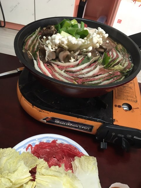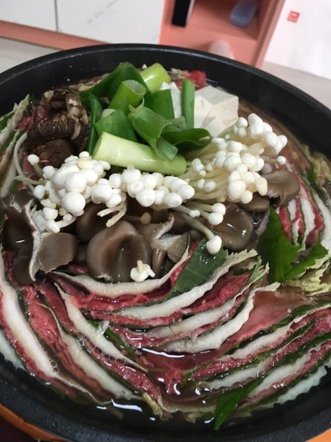 급하게 근처 마트로 날라가서 샤브샤브용 소고기 1근,알배추,버섯 간단히 사서 집으로 왔음