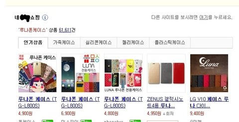 네*ㅂ 에서 루나폰케이스 치면 아래쪽에 네*ㅂ쇼핑 뽝 나오고