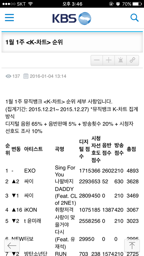 심지어 방송점수는 뮤뱅이 아니라 개콘,해투,슈퍼맨 등등에서 나온 점수.. 갓취저