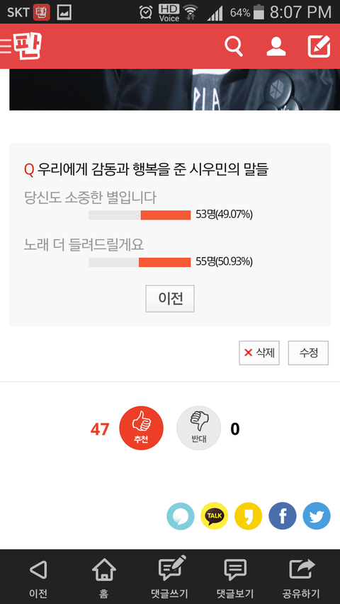 역시 팬들은 민석이를 응원하는 마음이 더 크다는 걸 알게 되었어
