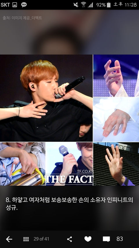 ㅍㅋ에 손 예쁘기로 유명한 남자연예인 TOP10에 성규나왔어!! 딱 보자마자 성규 기대하고 눌렀는데 성규있어서 좋음ㅋㅋㅋ