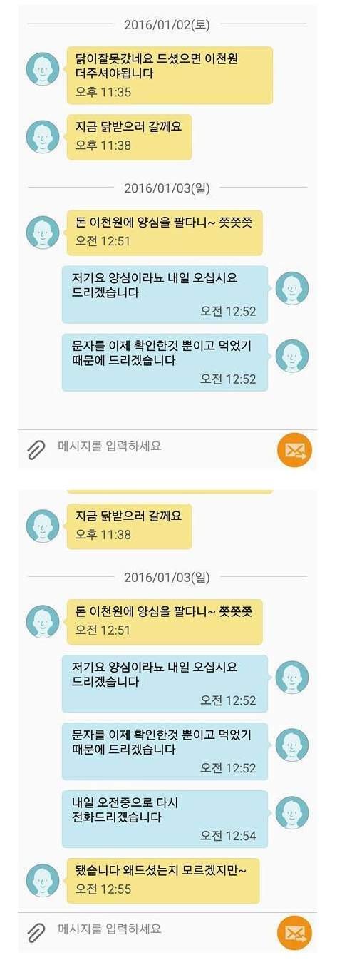 지들 실수로 그렇게 가져다놨으면 사과가먼저지 얼마나 짜증나는 일인데 가격떠나서 내꺼 안와서 먹지도 못해 시간은 더 오바되고 거기다 대고 이천원 더 내놓으란 소리하는게 사장이 할소린가싶다.