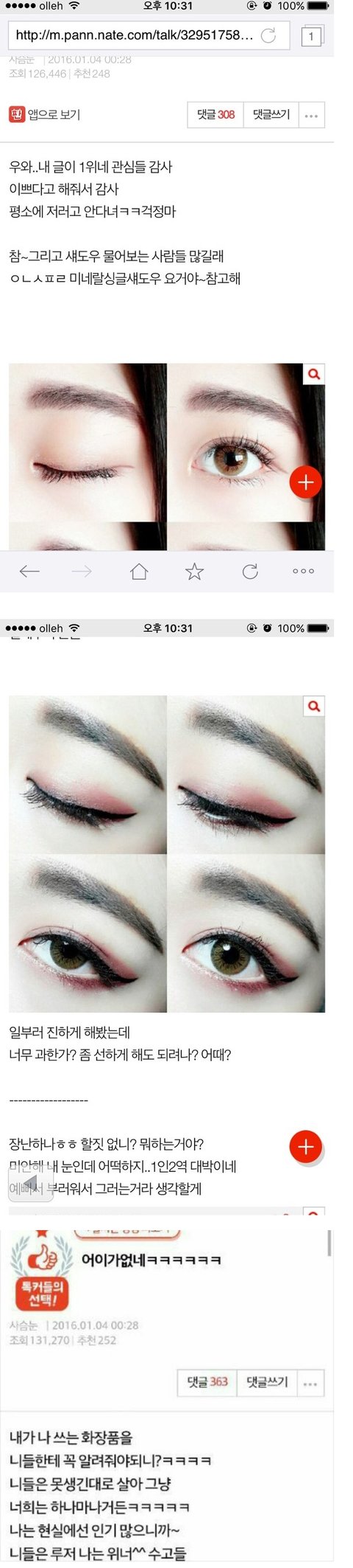 아, 그리고 제 눈화장에 대해서 안 좋게 보시는 분들도 계시는데