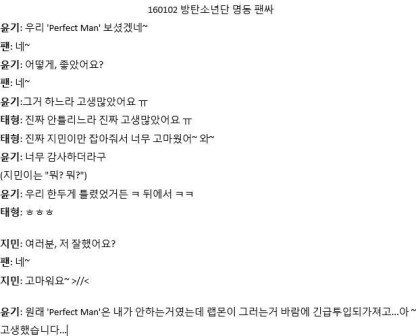 윤기 원래 퍼펙트맨 안하는거였구나...