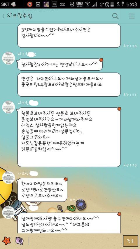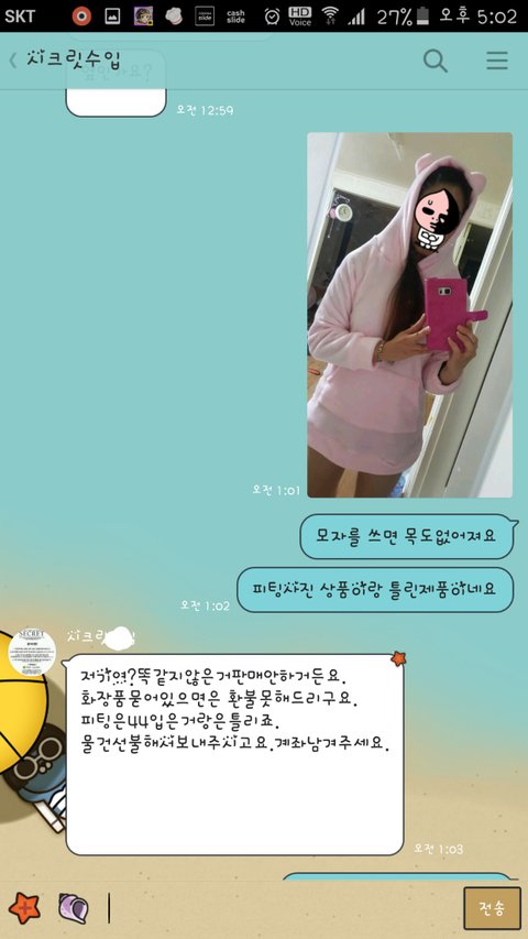 카카오채널에 [시크릿ㅇㅇㅇ]이라는 옷파는데서 레깅스후드세트 하나를 주문했더랬죠