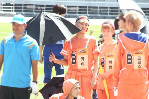 사실 비가 아니라 무대장치였는데 종인이가 비오는줄알고ㅋㅋ
