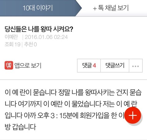 언뜻보면 외국인이 번역기 돌렸다고 생각할 수 있는데 생각해보니까 번역기로 돌리면 '왕따'라는 단어가 나올 수가 없음 저기 오타도 그렇고 굳이 이름이랑 가입한 시간을 적어놓은 이유는 뭘까 구체적인 시간도 기억하는거도 이상하고...내가 셜록이라 좀 예민할 수도 있어 하핫!
