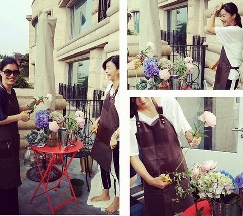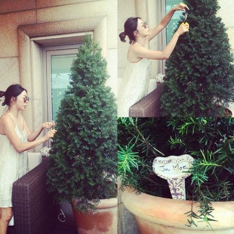 파자마에 선글라스ㅋㅋㅋㅋㅋ 집 앞 나무 가꾸는 모습이 남다름