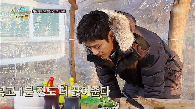추운 날씨에 패딩 껴입고 떡국 끓이는데 자상함이 철철